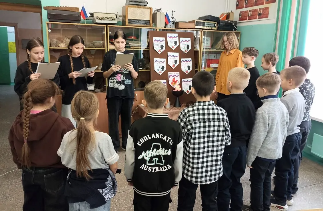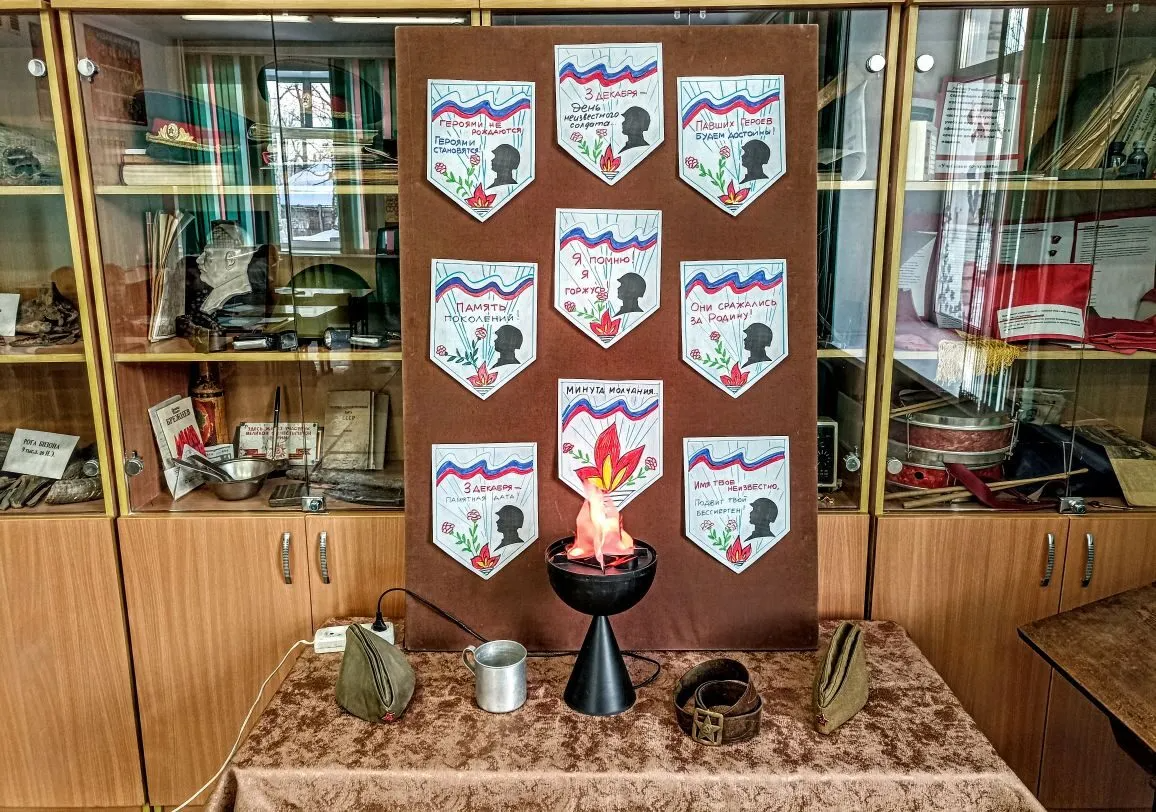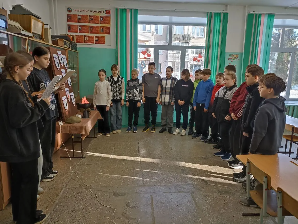 В историко-краеведческом отделе школьного музея активисты музея провели во всех классах патриотические уроки, посвященные этой дате: девочки рассказали ребятам об этом дне Памяти, совместно с учащимися почтили память погибших героев минутой молчания.